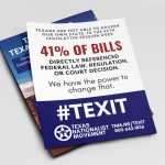 This 4.5″ x 5.5″ push card is perfect for mass distribution to Texans who are looking for answers to the key issues surrounding TEXIT. Ships in packs of 100 cards.